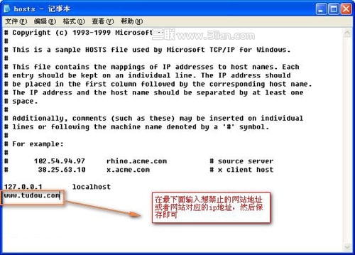 方法一:在 Host中禁止。你可以在C:\WINDOWS\system32\drivers\etc 中找到该文件,或者直接使用系统的搜索功能找出。然后再用记事本打开,在最下面加入一行www.tudou.com其中www.tudou.com是你想禁止访问的网址,当然你也可以填入该网站对应的IP。这样禁止后,就无法访问该网站了。