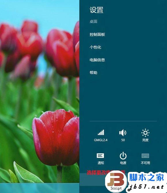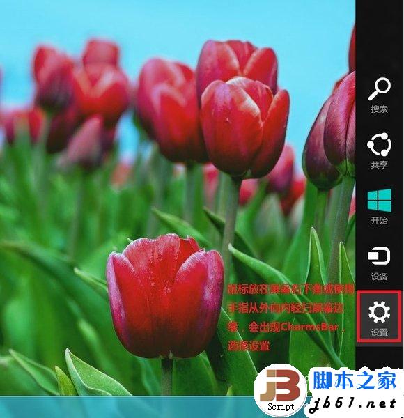 1、对于触摸屏机器手指从屏幕右侧边缘向内轻扫,对于非触摸屏机器鼠标放置屏幕右上角或右下角,将出现 CharmsBar ,然后点击设置。如下图所示: