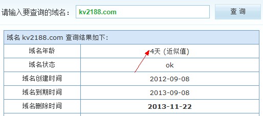 解析:一般腾讯从来不会发布这种中奖信息,而且这个图片美工实在不怎么样,腾讯真发布信息都是用公告方式,而且还是文字的,或者都是用右下角弹出的方式。当然还要确定是否为官方网站,图片中的网址很明显不是官方的,而且域名也不好记,我们来看看他的域名时间,如下图: