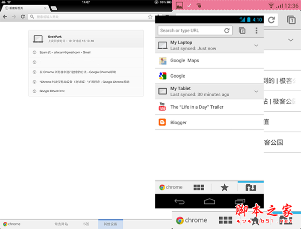通过“同步书签、同步密码、发送到移动设备、自动登录、智能建议”这些功能可以将在桌面电脑上打开的标签页、存储的书签和多功能框数据同步到您的手机或平板电脑上。下面以不同设备间标签页的同步为例为你介绍 Chrome 的同步功能。