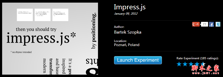 Google 有一个叫做 Chrome Experiments 的网站,在这个网站里除了可以浏览各种以 JavaScript、HTML5 和 WebGL 编写的创新实验展示,如有趣好玩的游戏(Cube 3D地图)、互动电影,新颖惊艳的 Impress.js (内容展示效果库,类似3D 版 PPT) 、Kinect+WebGL 、其他各种有用的库等。此外今年还新增了专门面向移动设备的页面。