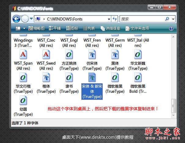 下载后打开系统字体文件夹 C:WINDOWSFonts 。把宋体 & 新宋体 拖到桌面上(必须是桌面!)然后再把解压出来的Simsun.ttc字体文件拖到字体文件夹,重启即可。