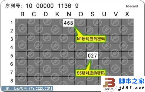 请您根据系统提示的动态密码坐标,刮开S5,N1所对应的动态口令卡背面坐标(为了更好的保护电子银行口令卡信息安全,建议您只刮开需要的电子银行口令卡坐标),如下图所示: