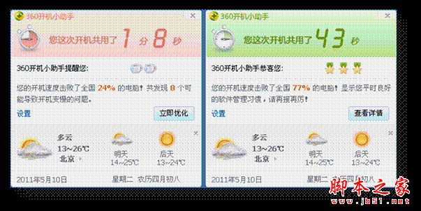 下图是小编在清理前后开机时间的对比,效果还是非常明显的,开机速度提高了25秒,43秒也算及格了。