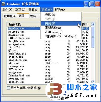 二:如下图所示,点关机,将鼠标移至关闭位置(注意:不要马上按,不然和正常关机一样的)此时,按住Ctrl键,再按关机,屏幕很快就变黑关闭了,不是意外关机,只要你文档都保存好,肯定不会丢失数据,损坏数据的。