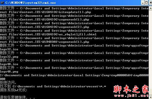 echo 清理垃圾文件,速度由电脑文件大小而定。在没看到结尾信息时