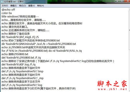 第二种:批处理脚本清理垃圾(一键清理系统垃圾文件win7版)