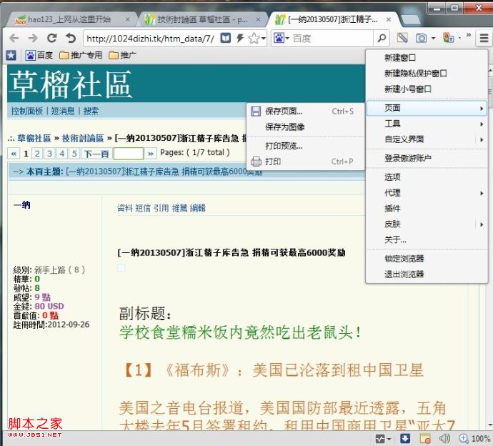 2、先打开一个帖子,此处以一納为例子(图文都有),点击文件—保存网页