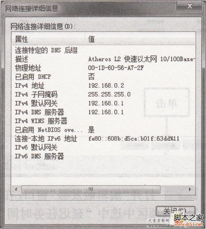 步骤3:弹出“网络连接详细信息”对话框,即可查看本机IP地址,如下图所示