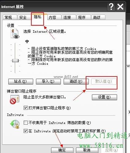 打开网页经常弹出一个提示框框:每次一个cookie基于您的隐私策略被限制时,隐私图标显示在状态栏上。怎么把它关掉呢?
