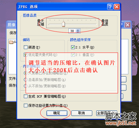 第五步:调节适当的压缩比,使图像大小在200k以内,点击“确定”