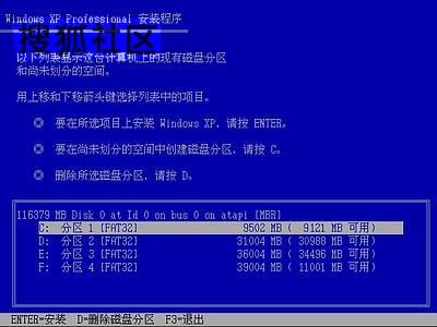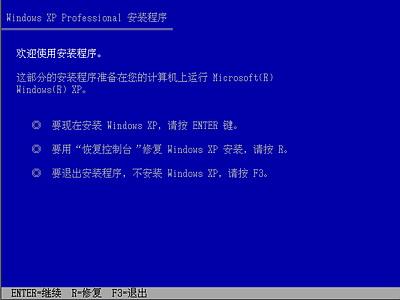 全中文提示,“要现在安装WindowsXP,请按ENTER”,按回车键后,出现如下图所示