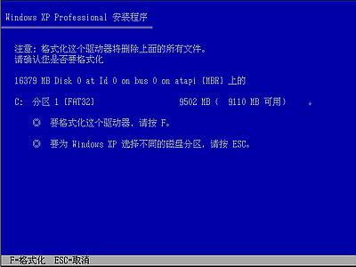 由于所选分区C的空间大于2048M(即2G),FAT文件系统不支持大于2048M的磁盘分区,所以安装程序会用FAT32文件系统格式对C盘进行格式化,按“Enter”键回车,出现下图所示