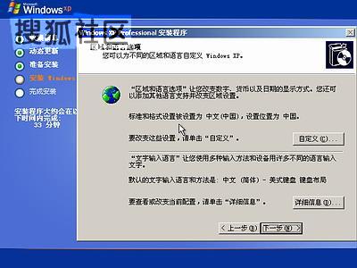 区域和语言设置选用默认值就可以了,直接点“下一步”按钮,出现如下图
