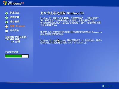 继续安装,到这里后就不用你参与了,安装程序会自动完成全过程。安装完成后自动重新启动,出现启动画面,如下图