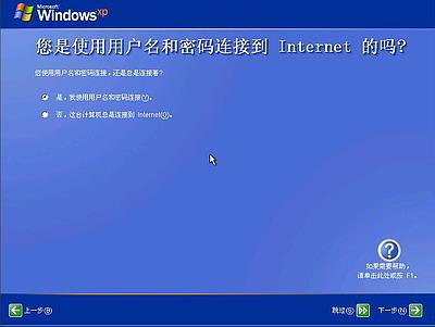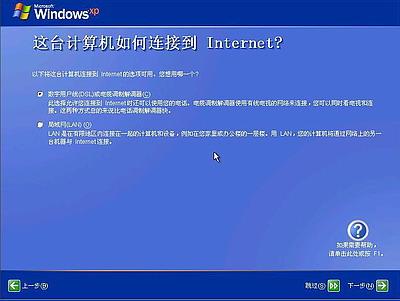 点击右下角的“下一步”按钮,出现设置上网连接画面,如下图所示