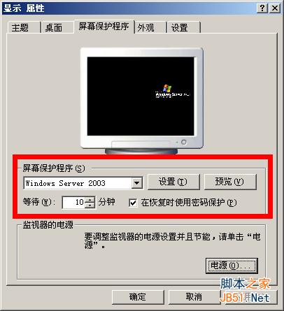 在桌面空白处,右击,选属性,切换到“屏幕保护程序”标签页,选择一个屏幕保护程序,并且在“在恢复时使用密码保护”,等待时间建议为10分钟。如下图:
