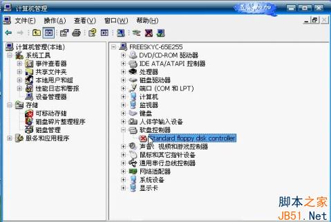 2、如果选择停用软盘控制器,软盘控制器上就会出现一个红叉,而软盘驱动器就会自动消失