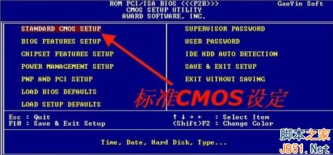 重启电脑立即按Delete键进入BIOS程序, BIOS因生产厂家不同而有所不同,但大同小异,在Standard CMOS Setup(标准CMOS设定)选项按回车键进入子选项,