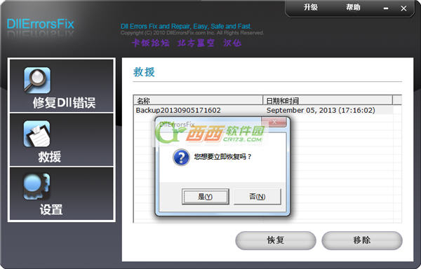 这个救援其实就是恢复DLL修复之前的备份。。点击一下名称,点击恢复即可