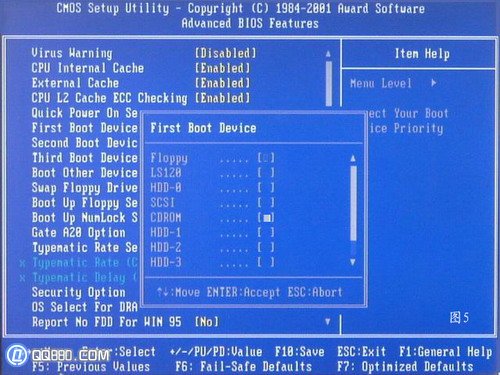 看到那个圈圈住的地方了吗,按回车进入,选择下图所示的然后按光标选择CDROM,按回车确认