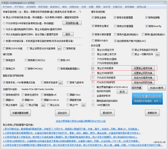 图:大势至电脑禁用U口软件设置禁止/允许安装或运行程序