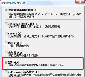 勾选“密码”项,点击“删除”,现在好了,所有记录就都没了!(正如你所见,通过这里还可以删除Internet临时文件、Cookie、历史记录、表单数据等等)