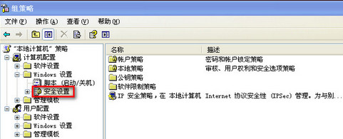 ⒉)然后再依次打开“计算机配置”—“windows设置”—“安全设置”如下图: