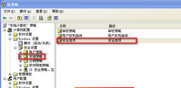 ⒊)再找到“本地策略”,将其打开,之后选择打开“安全选项”如下图: