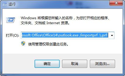 输入: C:\Program Files (x86)\Microsoft Office\Office14\outlook.exe /importprf .\.prf