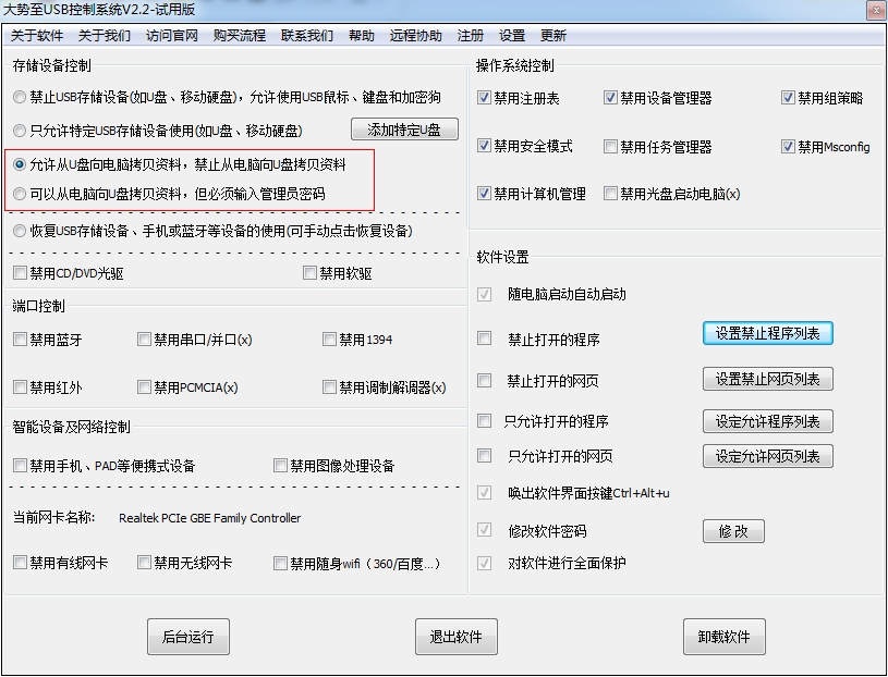 方法一、通过专业的电脑USB端口管理软件来禁止U盘复制电脑文件。