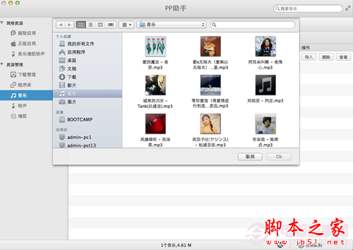 ②:在弹出的新对话框中找到本地的音乐文件点击打开即可添加至PP助手中