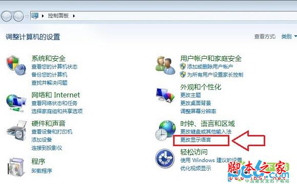 二、进入控制面板之后,我们再点击进入“更改显示语言”设置选项,如下图所示: