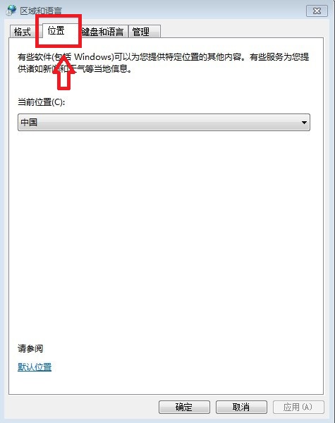 三、接下来会弹出一个“区域和语音”设置属性对话框,我们在顶部切换到“位置”选项卡,如下图所示: