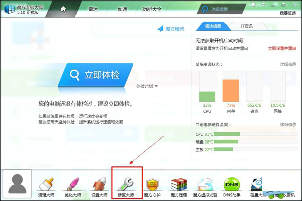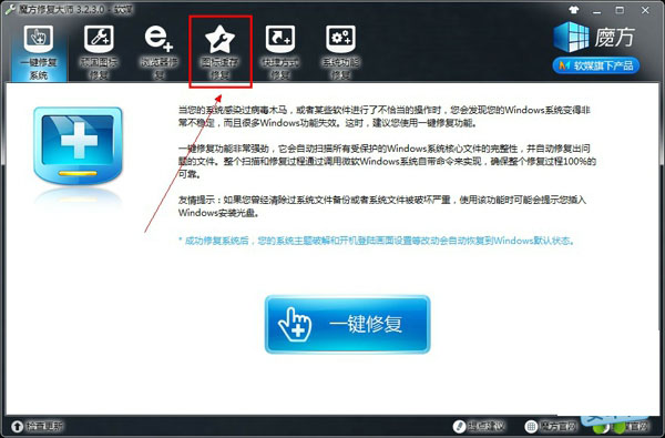 4、安装后打开魔方-点击“修复大师”