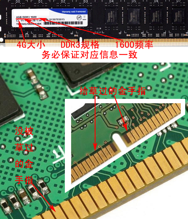 内存:电脑城的内存条金手指基本上都是有插过的痕迹,理由是商家出厂会测试,其实就是他吗的拿出用过换下来的。但只能够容忍有且只有一条很不明显的痕迹,如果金手指太过明显直接可以叫他换,另外要说明的是我在网上商城买的是完完全全没有的!