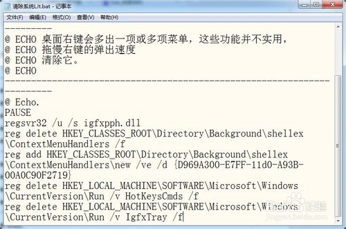 使用bat文件清楚桌面多余右键菜单(方法同上)