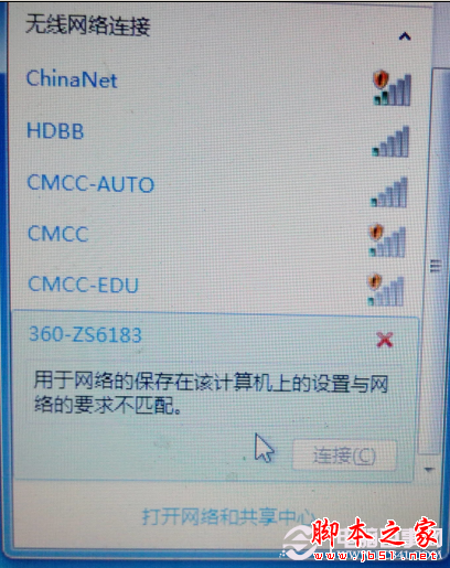 最近小编遇到一个发现了一个问题,在win7系统下搜索无线信号的时候发现有一个无线信号显示一个红叉,我点击它一下就提示“用于网络的保存在该计算机上的设置与网络要求不匹配”,经过小编多方查询,找到一个适合的办法。小编就分享一下我的解决过程。