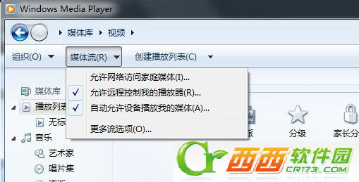 1)首先在电脑上启动Windows7系统的Windows Media Player,“媒体流”,先启用媒体流,选择“允许远程控制我的播放器”、“自动允许设备播放我的媒体”(出现提示时,选择允许),Windows Media Player不要关闭。(如下图所示)