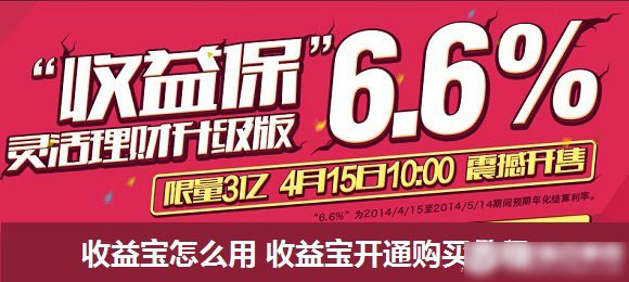 收益宝即将于4月15日上午10点正式开卖,由于是6.6%高收益稳赚限量版,请大家提前注册号账号与绑定好银行,在开售期间准时前往抢购。