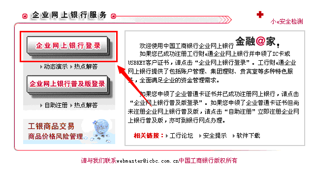 到了这里就可以打开 http://www.icbc.com.cn/icbc/ 点击 企业网上银行登录(毕竟跟企业账户绑定的)