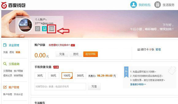 第一步:首先登陆百度钱包,可以使用之前已经有的百度账号,如果没有请先注册一个,注册后,登陆即可。进入百度钱包后台中兴后,点击“个人账户”下方的认证图标,如下图所示: