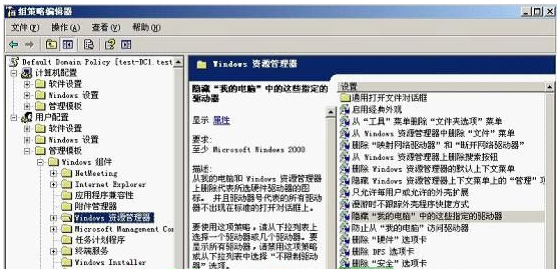 2、在组策略左侧的“本地计算机策略”中依次选中“用户配置”→“管理模板”→“Windows组件”→“Windows资源管理器”