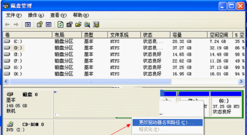 3、从弹出的快捷菜单中选择“更改驱动器名和路径”