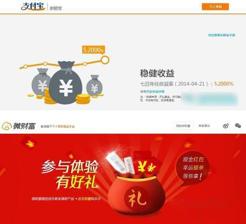 新浪微财富和余额宝的对比:总的来说,两者主打的理财产品都是货币基金,所以就风险来说,都比较小,而拿目前两个平台上的理财产品来说,余额宝要比新浪微财富有优势,产品类型较多,不过新浪微财富在5月份将发布6%-12%理财产品,应该会填补这一个差距,而在收益上来看,新浪微财富上写的收益也明显略高于余额宝的理财产品,但实际收益是否属实,还有待于考证。