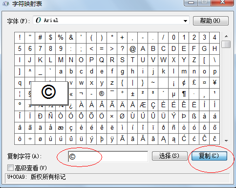 3.把此符号对拽到文本框中,然后点击“复制”,如图: