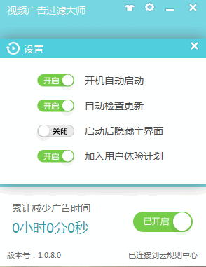 打开软件,会看到为我们过滤了多少秒的广告时间!