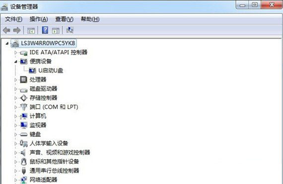 第一步、把我们自己常用的u盘插到电脑usb接口,当然要确保电脑已经可以识别。然后,我们打开“控制面板”,如果你不知道“控制面板”,可以点击“开始”菜单,它的右侧你可以看见“控制面板”。在“控制面板”界面,你双击“设备管理器”,展开“便携设备”,就可以看见我们的U盘显示。