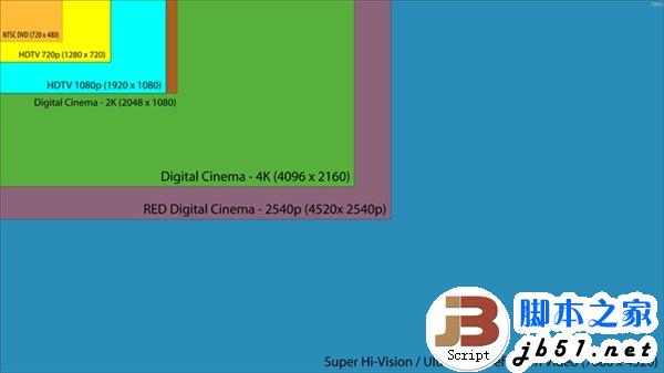 以此为标准,4K图像就是指水平方向每行像素值达到或者接近4096个的图像,多数情况下特指4096*2160分辨率。而根据使用范围的不同,4K图像也有各种各样的衍生分辨率,例如Full Aperture 4K的4096*3112、Academy 4K的3656*2664以及UHDTV标准的3840*2160等,都属于4K图像分辨率的范畴。