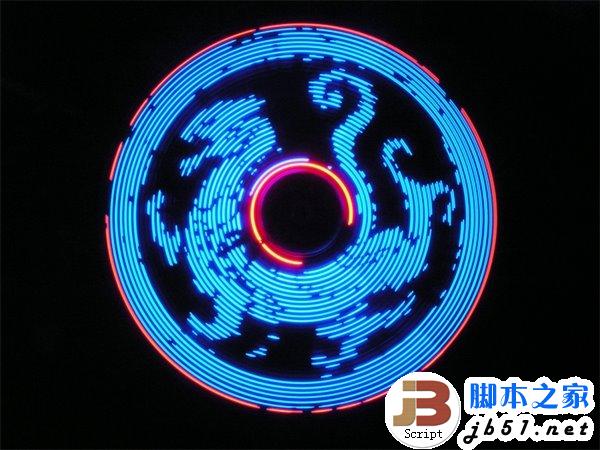因为人眼视觉残留效果,我们可以用旋转的LED灯带做出这样的图案
